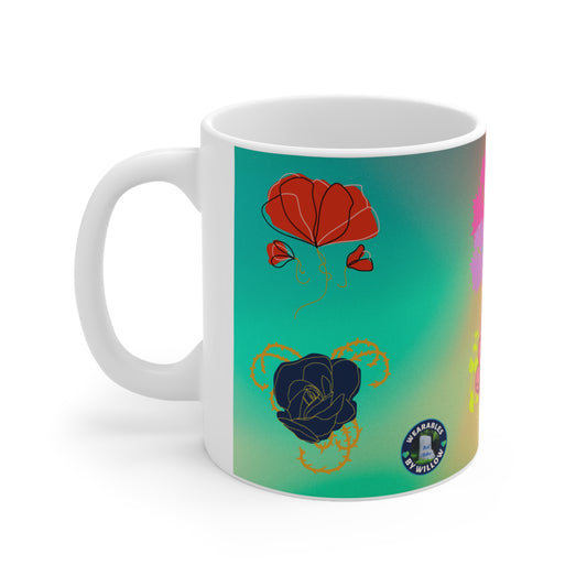 White Ceramic Mug, 11oz (Flower)